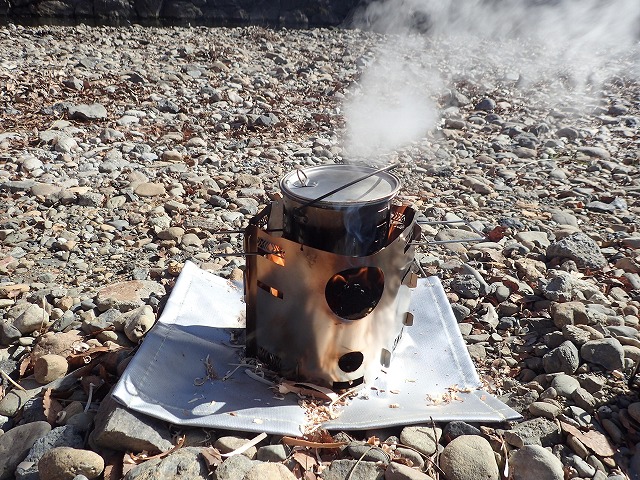 強く押し固めて使ってみたが、隙間も多くかなりの発熱量である。あっと言う間に沸騰した。