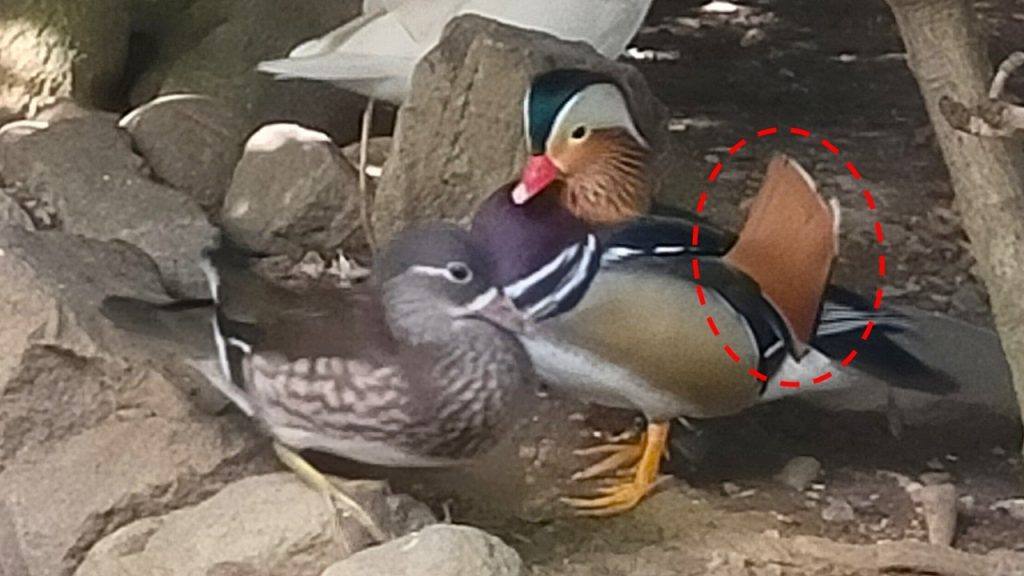 銀杏羽(思羽)とは、繁殖期のオスに特徴的な大型の三列風切羽。
